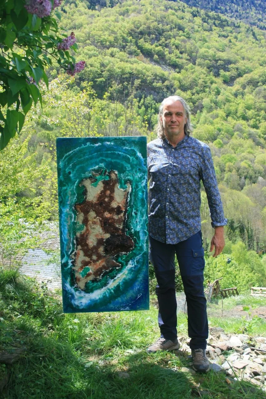 All of Max Volckaert’s works include a poem. He creates natural landscapes using natural elements and epoxy resin.