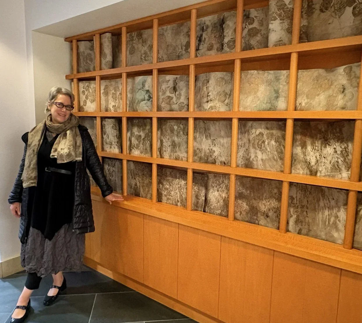 “I like to believe that my work balances intention and chance - I begin with a conceptual direction and allow the materials and processes to guide the outcome. Techniques such as botanical monoprinting introduce unpredictability, which is an important part of my practice. The process unfolds through layering, testing, and responding, rather than following a fixed plan from start to finish. As I do more site-specific installations more planning and measuring is required but the experimental nature of my process is central to the work.”
