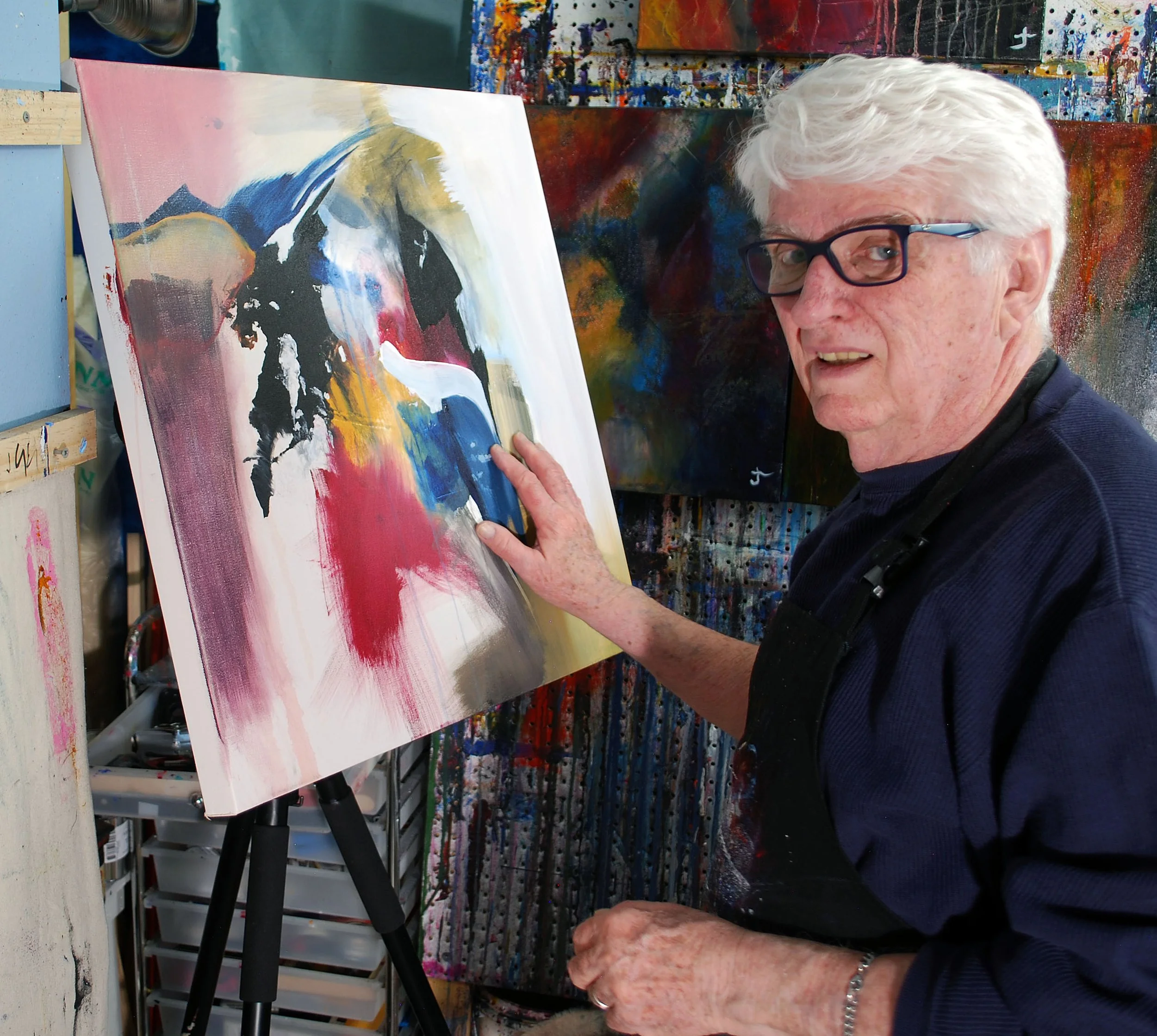 “Colorful, gestural, lyrical, it's been described as visual poetry. Non-objective; in fact, my request to viewers is, ‘Please do not look for images in my work. If there are any, it's unintentional.’”